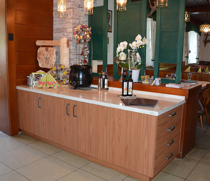 Der Gastraum mit der großen Schank und das gemütliche Stüberl mit insgesamt 70 Sitzplätzen laden zum Essen, Trinken und Feiern ein.