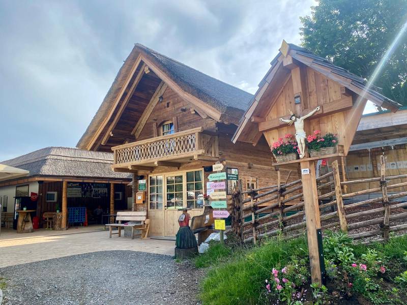 Egal ob eine kurze Auszeit auf der Sonnenterrasse oder eine gemütliche Rast mit Blick in die Kapelle. Getränkeautomaten, Kaffeeautomat zur Stärkung und Toiletten sind vorhanden. Für junge Gäste gibt es einen großen Spielplatz direkt bei der Edlseer Alm.